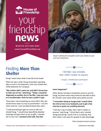 If you prefer to receive your House of Friendship news electronically, please sign up for House of Friendship’s Email List
